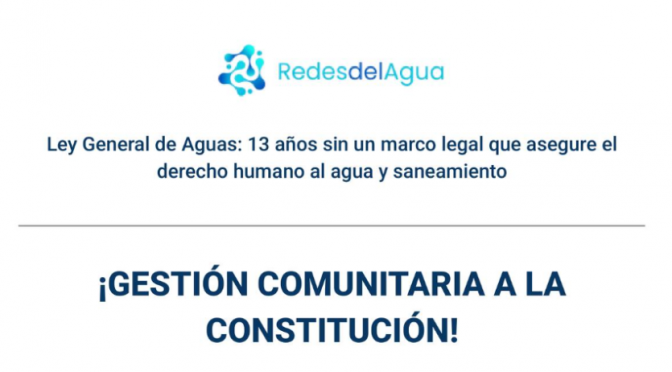 Pronunciamiento de Redes del agua Ley General de Aguas: 13 años sin un marco legal que asegure el derecho humano al agua y saneamiento El 8 de febrero de 2025 … Seguir leyendo Gestión comunitaria a la constitución (Redes del agua)
