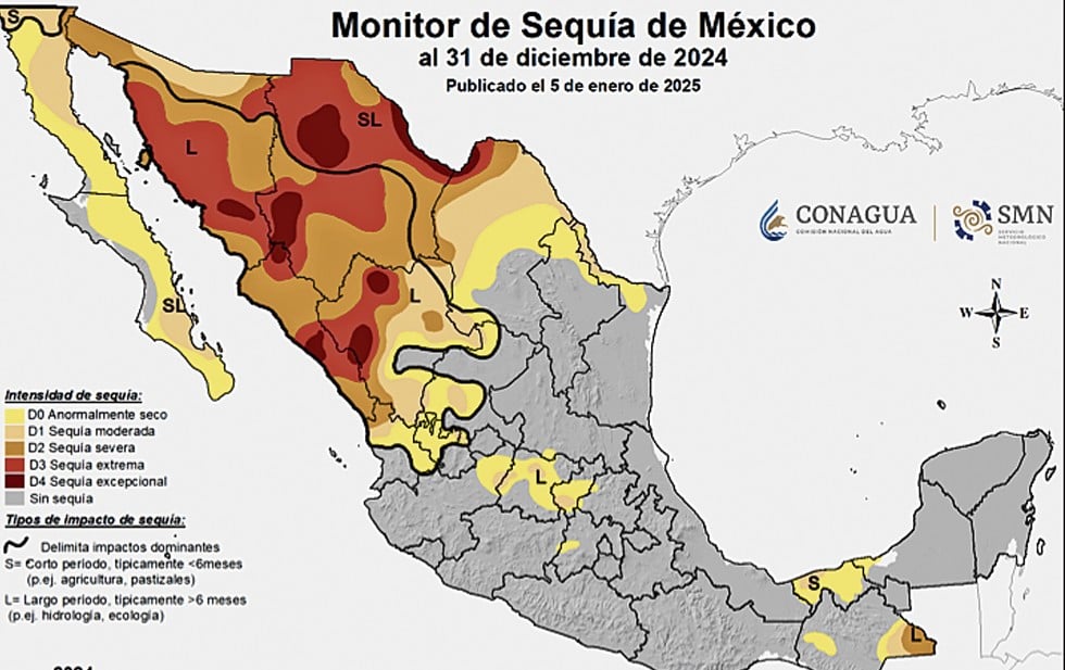 Chihuahua.- De los 286 municipios que presentaron algún nivel de sequía en el país al cierre de 2024, el estado de Chihuahua aporta 67, es decir, la totalidad de municipios, lo que representa el 20 por ciento nacional, en un contexto en que sus principales presas, Las Vírgenes y La Boquilla, están casi vacías, de acuerdo con datos oficiales.