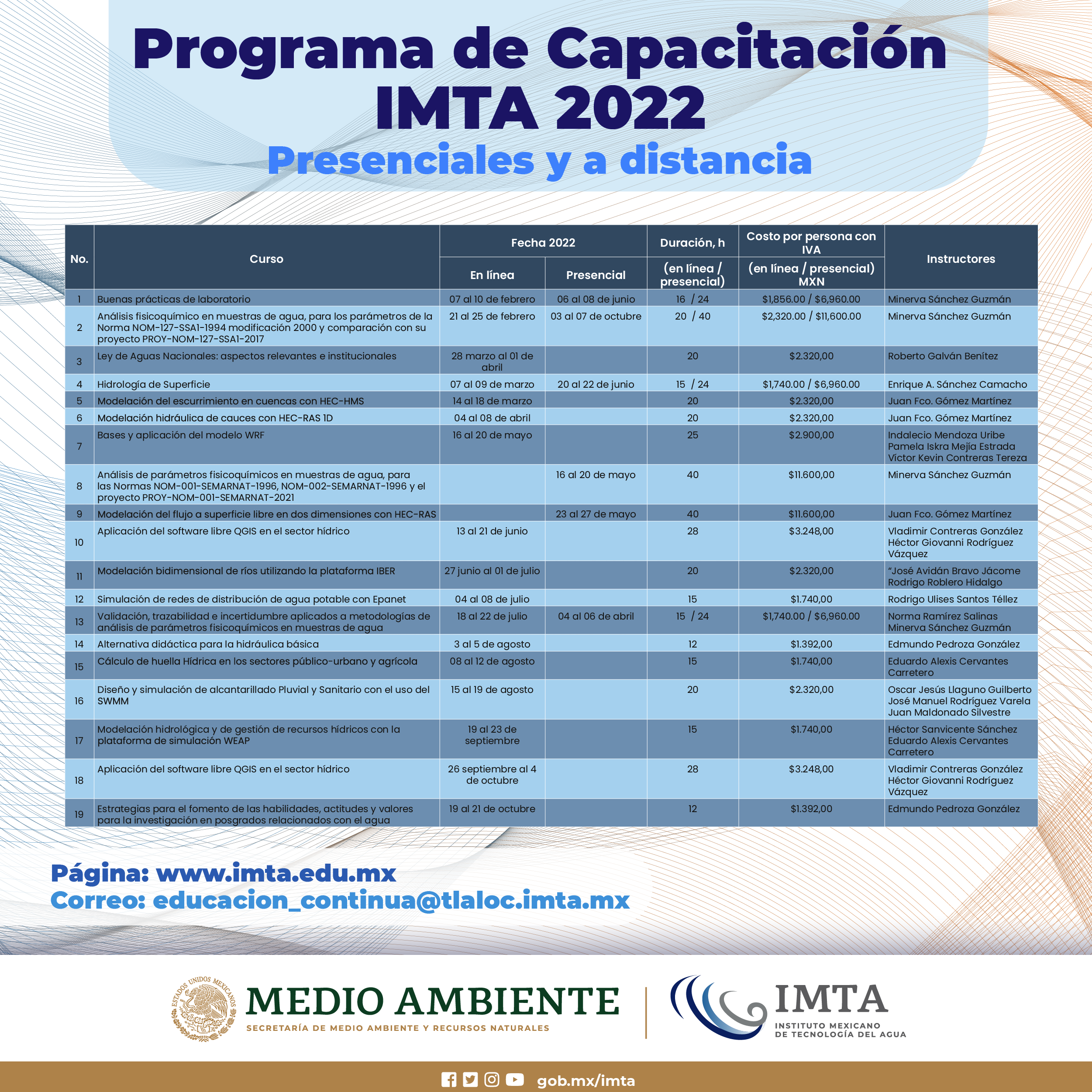 Programa de capacitación 19 enero, 2022 2501 × 2501 Curso en línea: Buenas prácticas de laboratorio-IMTA
