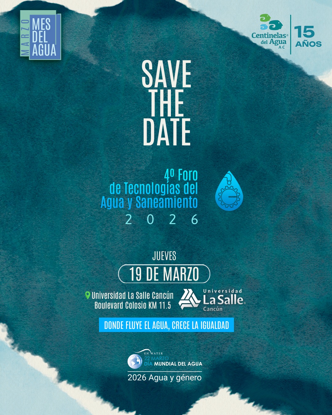 Centinelas del Agua A.C, te invita a participar este 19 de marzo, en el marco del Día Mundial del Agua, en donde van a reunir a expertos e innovadores para transformar el futuro de nuestro recurso más vital.
