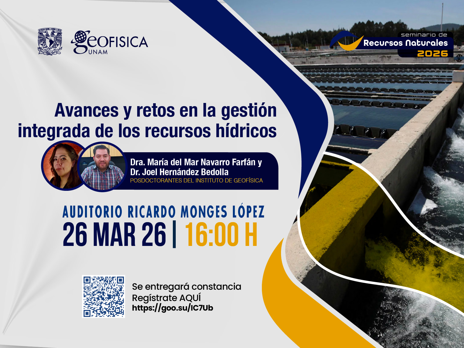 El programa de Eofísica de la UNAM te invita a acomparlos en su próximo Seminario de Recursos Naturales “Avances y retos en la gestión integrada de los recursos hídricos”, por la Dra. María del Mar Navarro Farfán y el Dr. Joel Hernández Bedolla, posdoctorantes de nuestro Instituto.