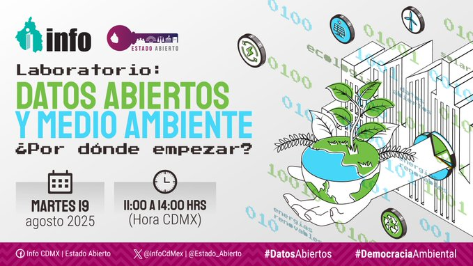 Info CDMX te invitan a participar en el laboratorio “Datos Abiertos y Medio Ambiente: ¿Por dónde empezar?”, un espacio que promueve el uso de la información pública para fortalecer la democracia ambiental.