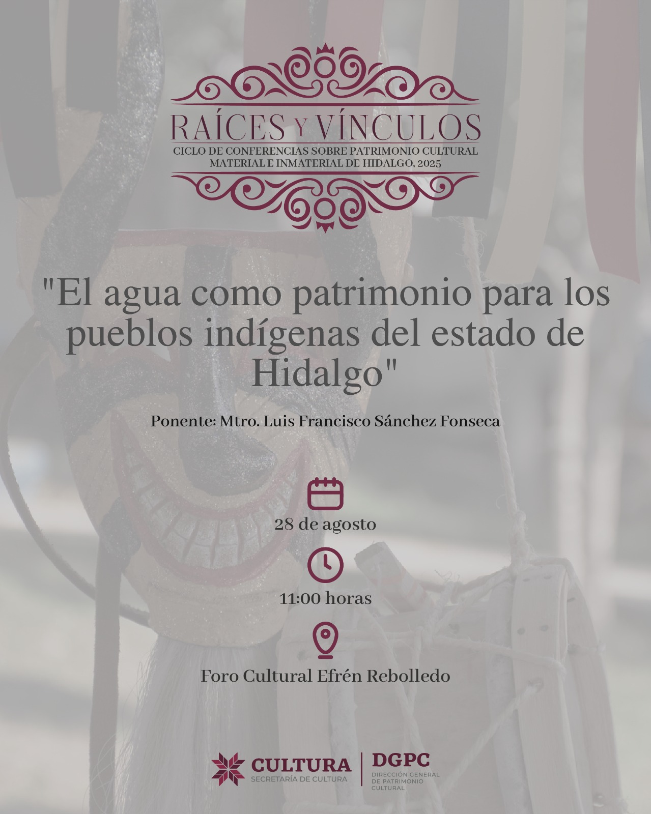 “El agua como patrimonio para los pueblos indígenas del estado de Hidalgo”, a cargo del Mtro. Luis Francisco Sánchez Fonseca.