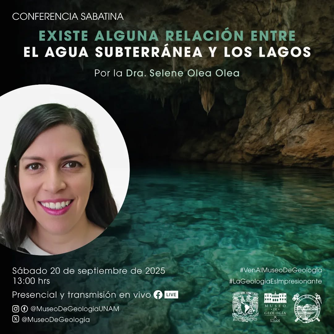 El Museo del Instituto de Geología de la UNAM te invitan a la conferencia “¿Existe alguna relación entre el agua subterránea y los lagos?“, que será impartida por la Dra. Selena Olea Olea.