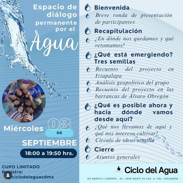 Ciclo del Agua CDMX les espera como cada primer miércoles de mes para conversar, reír y sonreír.
