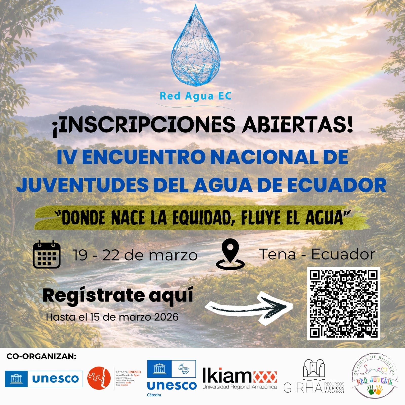 La Red Agua EC te invita a inscribirte para el IV Encuentro Nacional de Juventudes del Agua de Ecuador – “Donde nace la equidad, fluye el agua”.