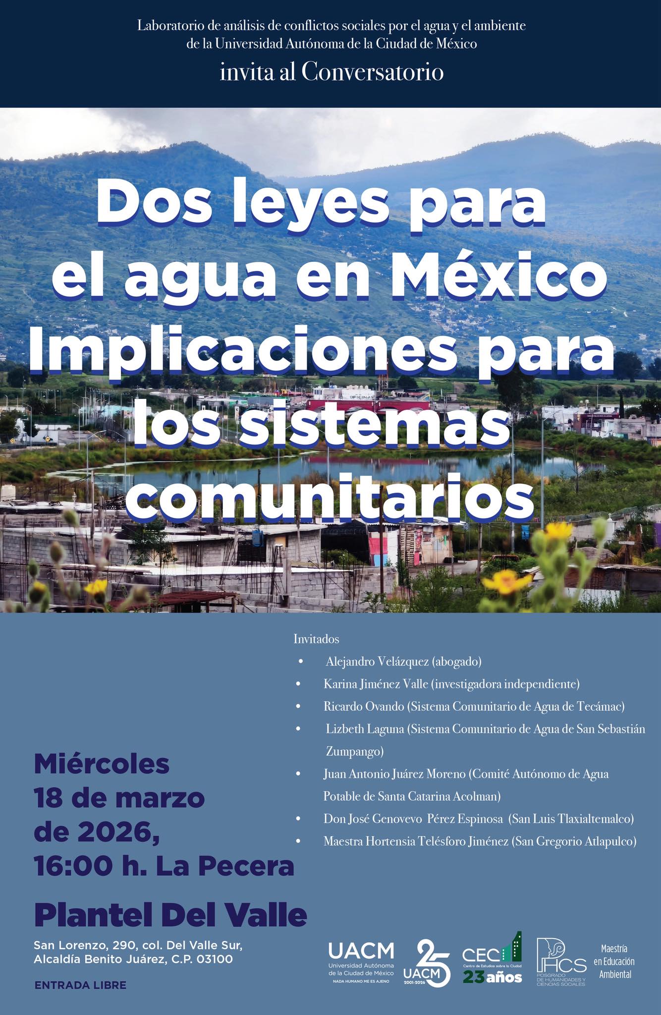 La Universidad Autónoma de la Ciudad de México te invita al Conversatorio del Laboratorio de análisis de conflictos sobre agua y ambiente.