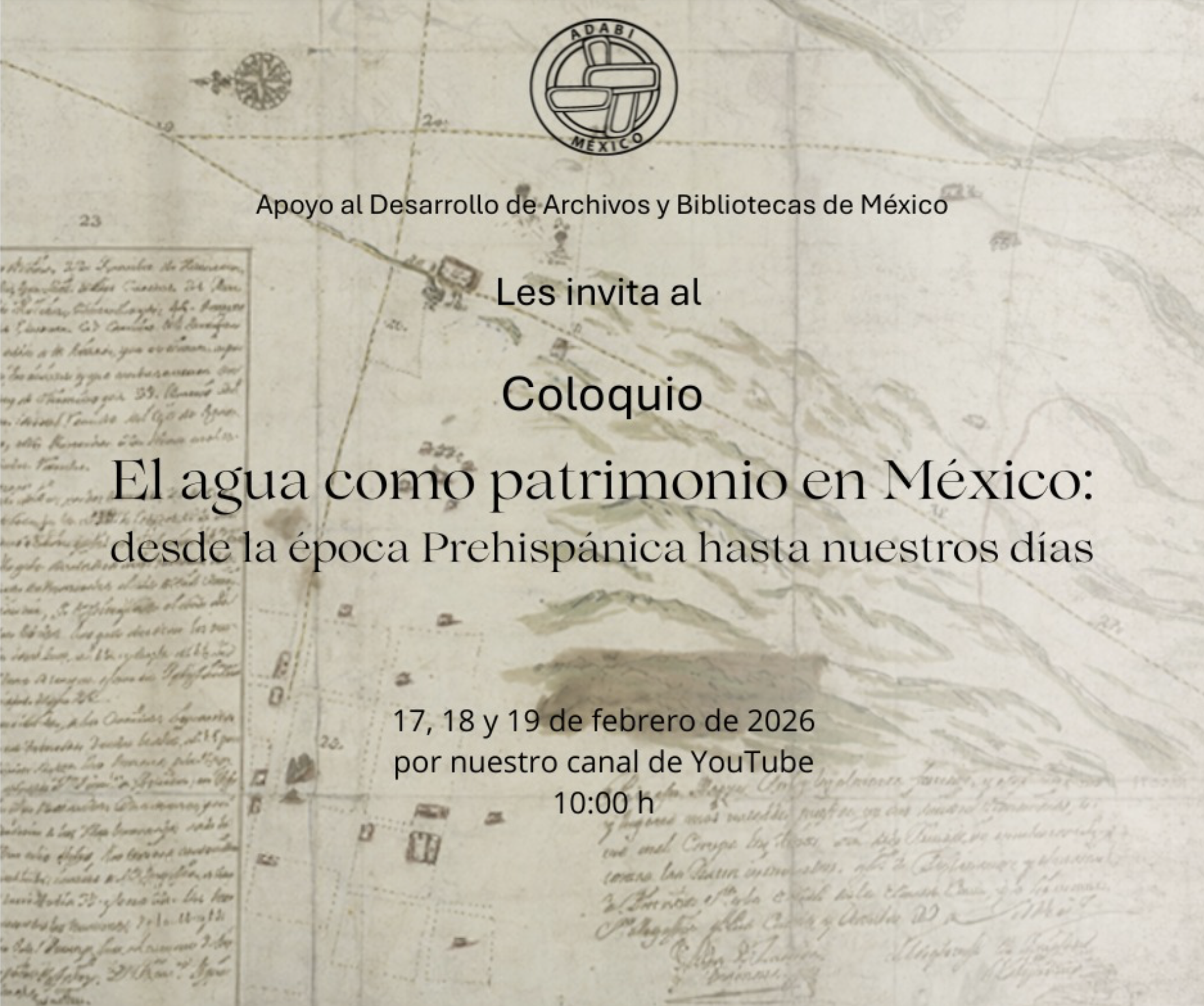 El agua es memoria, territorio y patrimonio. Te invitamos a seguir en vivo por el canal de YouTube de @ADABIdeMexico el coloquio “El agua como patrimonio en México: desde la época prehispánica hasta nuestros días”. Súmate a la reflexión y acompáñanos.