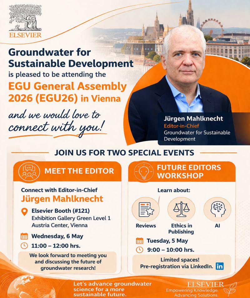 Groundwater for Sustainable Development, en español: Aguas Subterráneas para el Desarrollo Sostenible se complace en asistir a la Asamblea General de European Geosciences Union (EGU) 2026 EGU26 ) en Vienna y nos encantaría conectar con vosotros en dos eventos: