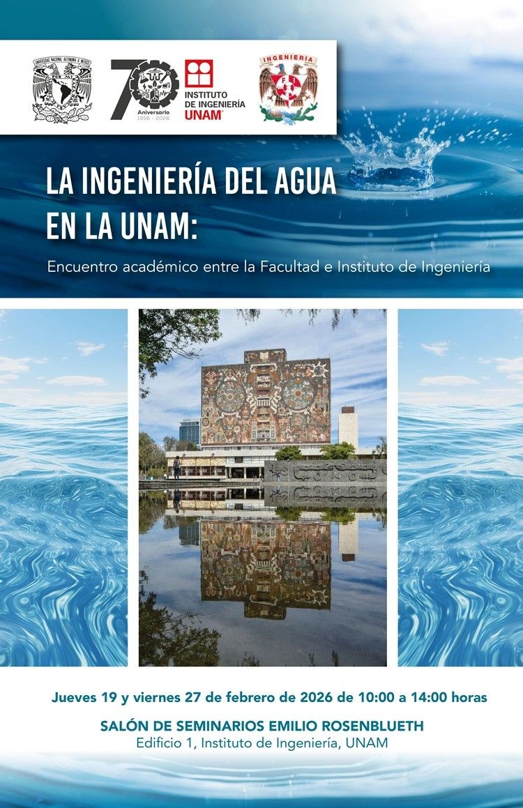 La Ingeniería del Agua en la UNAM te invita al Encuentro Académico entre la Facultad de Ingeniería UNAM y el Instituto de Ingeniería de la UNAM. Un espacio de diálogo académico para fortalecer la investigación y la formación en hidráulica y gestión del agua.
