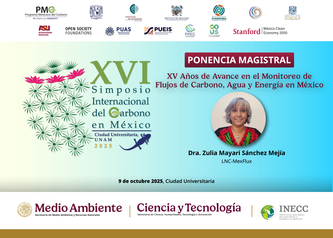 El Programa Mexicano del Carbono te invita a la ponencia magistral “XV Años de Avance en el Monitoreo de Flujos de Carbono, Agua y Energía en México”