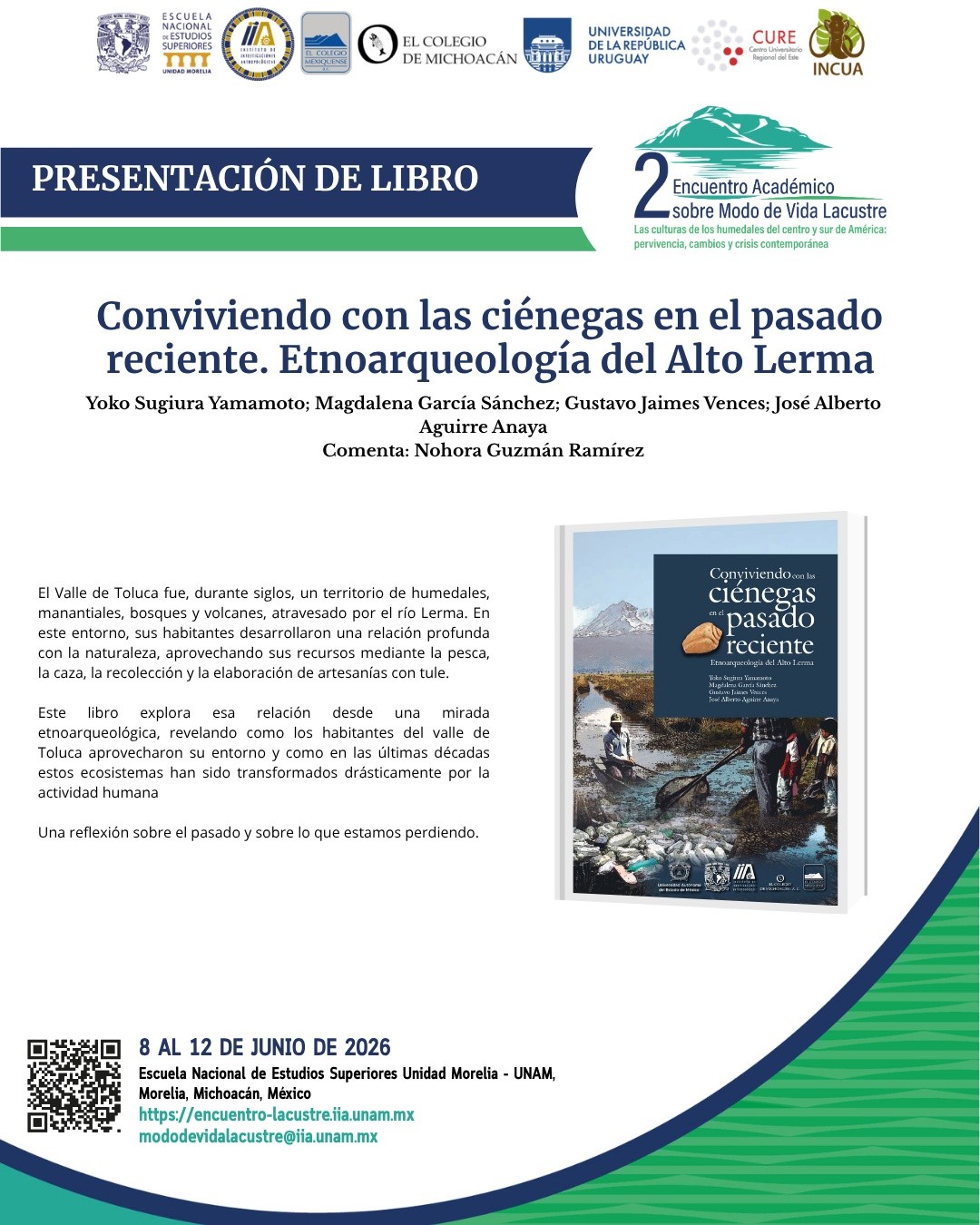 Al Encuentro Académico Sobre Modo de Vida Lacustre, nos emociona anunciar la presentación del libro “Conviviendo con las ciénegas en el pasado reciente. Etnoarqueología del Alto Lerma” una obra colectiva de Yoko Sugiura Yamamoto; Magdalena García Sánchez; Gustavo Jaimes Vences; José Alberto Aguirre Anaya.