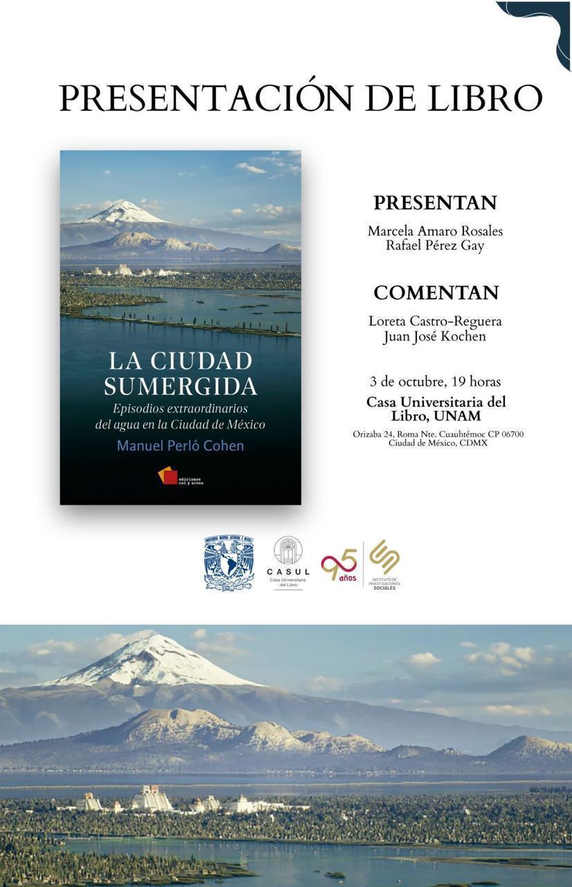 Agua UNAM te invita a la presentación del libro La ciudad sumergida de Manuel Perló Cohen, presentado por Rafael Pérez Gay.