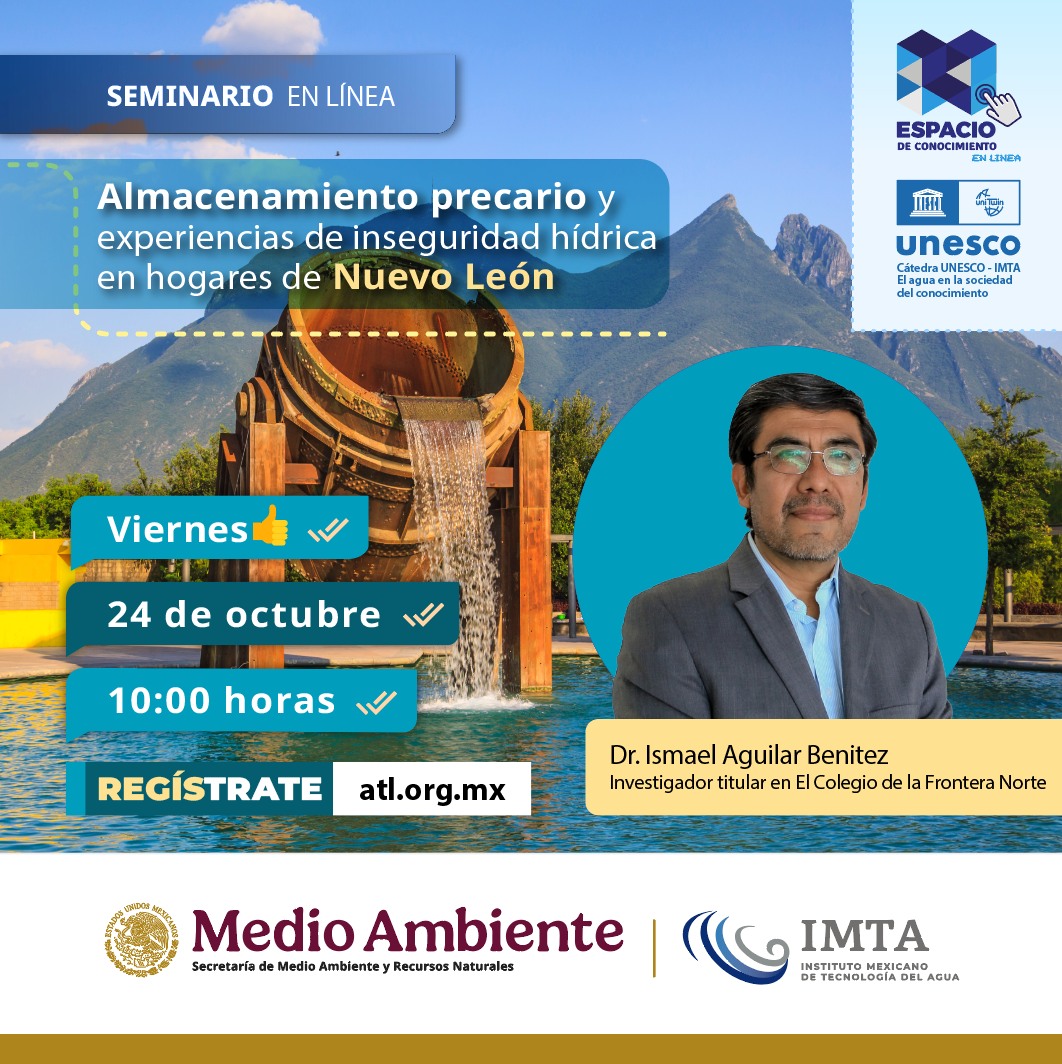 Seminario en línea – “Almacenamiento precario y experiencias de inseguridad hídrica en hogares de Nuevo León” (Cátedra Unesco IMTA)