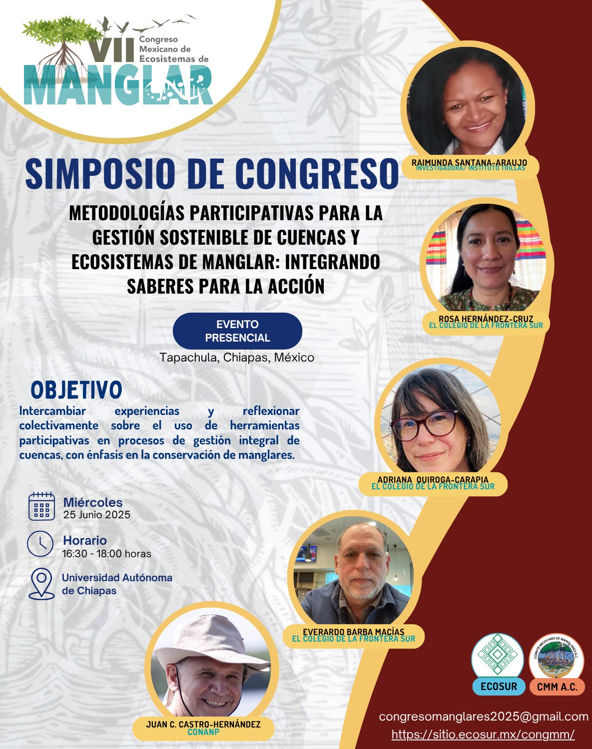 El Colegio de la Frontera Sur (Ecosur) te invita al simposio Metodologías participativas para la gestión sostenible de cuencas y ecosistemas de manglar: integrando saberes para la acción, participará personal académico de Ecosur.