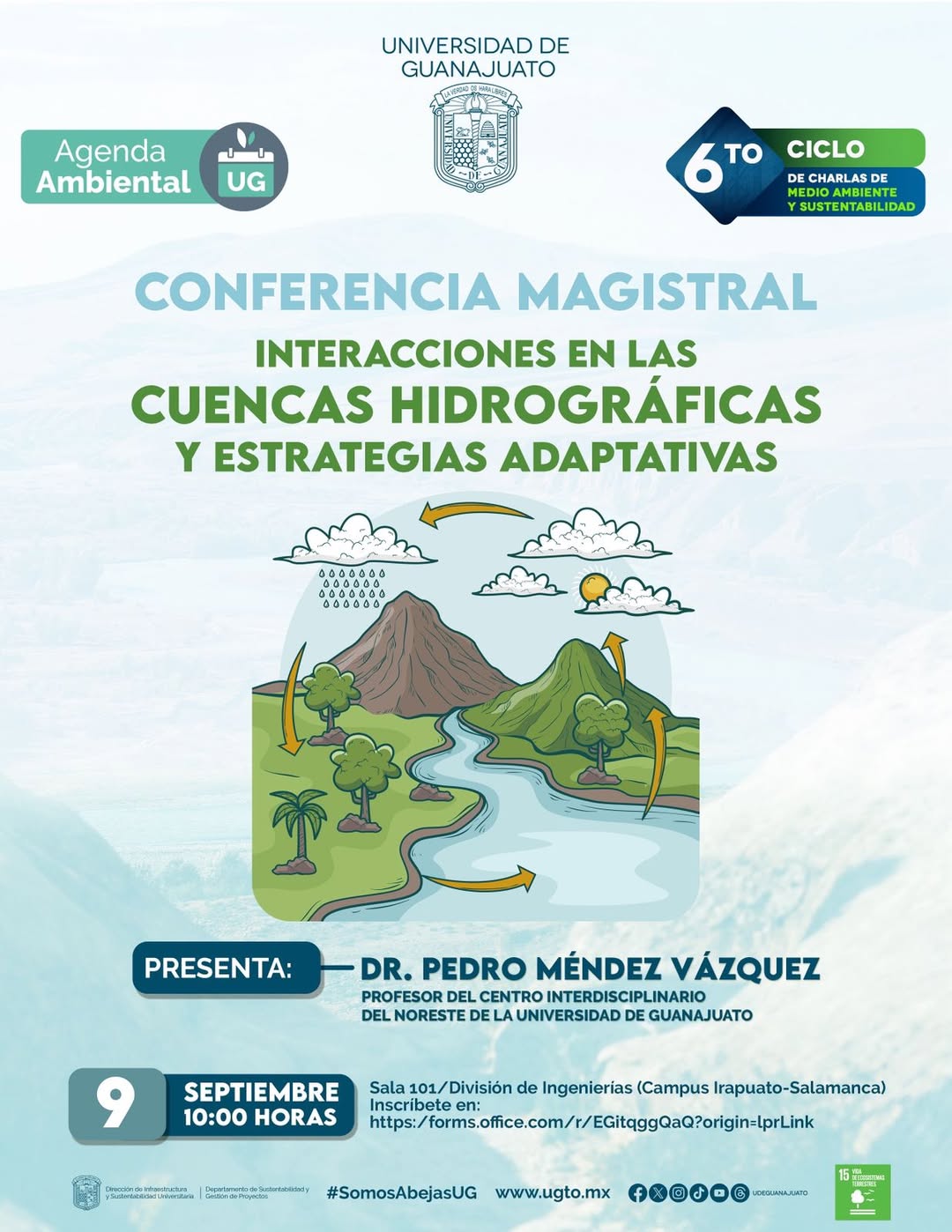 El Departamento de Sustentabilidad y Gestión de Procesos/Coordinación de Manejo Ambiental Y Sustentabilidad y la Dirección de Infraestructura y Sustentabilidad Universitaria UG invita cordialmente a la comunidad universitaria a participar en el: 6° Ciclo de Charlas de Medio Ambiente y Sustentabilidad. Donde se llevará a cabo la conferencia magistral: “𝑰𝒏𝒕𝒆𝒓𝒂𝒄𝒄𝒊𝒐𝒏𝒆𝒔 𝒆𝒏 𝒍𝒂𝒔 𝒄𝒖𝒆𝒏𝒄𝒂𝒔 𝒉𝒊𝒅𝒓𝒐𝒈𝒓á𝒇𝒊𝒄𝒂𝒔 𝒚 … Seguir leyendo 6° Ciclo de Charlas de Medio Ambiente y Sustentabilidad. (UG)