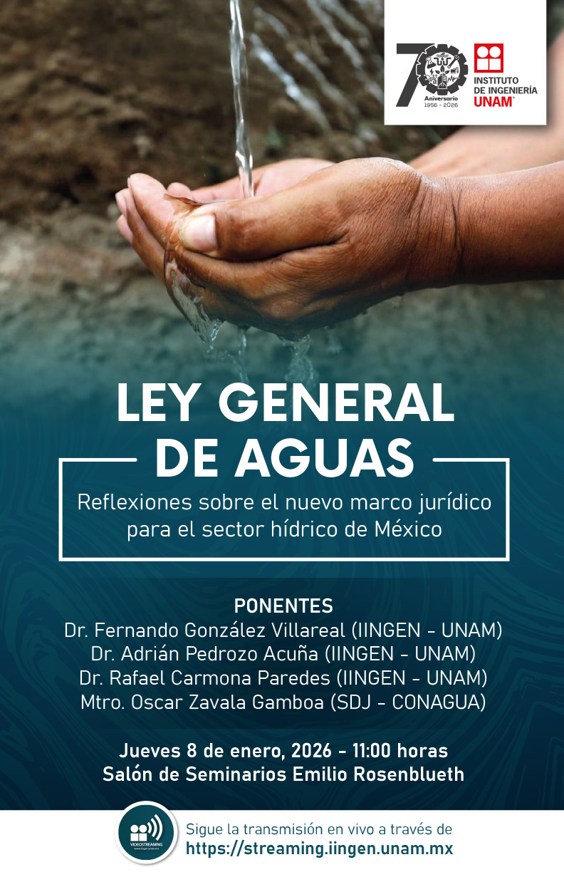 El Instituto de Ingeniería UNAM invita al Foro Ley General de Aguas: Reflexiones sobre el nuevo marco jurídico para el sector hídrico de México. Ponentes: Dr. Fernando González Villarreal (IINGEN - UNAM) Dr. Adrián Pedrozo Acuña (IINGEN - UNAM) Dr. Rafael Carmona Paredes (IINGEN - UNAM) Mtro. Oscar Zavala Gamboa Fecha y hora: 8 de … Seguir leyendo Foro Ley General de Aguas (Instituto de Ingeniería UNAM)