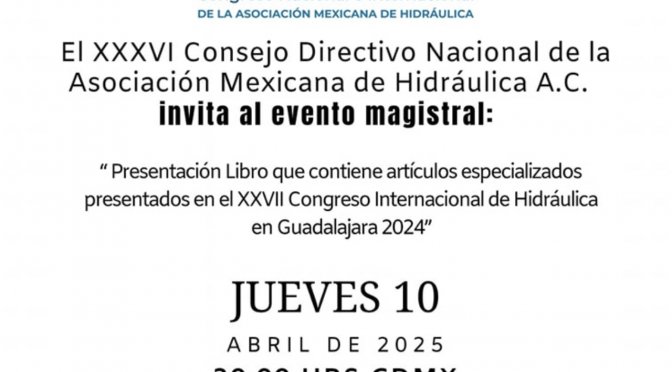 La Asociación mexicana de Hidráulica les invita a: 𝑷𝒓𝒆𝒔𝒆𝒏𝒕𝒂𝒄𝒊𝒐́𝒏 𝑳𝒊𝒃𝒓𝒐 𝒒𝒖𝒆 𝒄𝒐𝒏𝒕𝒊𝒆𝒏𝒆 𝒂𝒓𝒕𝒊́𝒄𝒖𝒍𝒐𝒔 𝒆𝒔𝒑𝒆𝒄𝒊𝒂𝒍𝒊𝒛𝒂𝒅𝒐𝒔 𝒑𝒓𝒆𝒔𝒆𝒏𝒕𝒂𝒅𝒐𝒔 𝒆𝒏 𝒆𝒍 𝑿𝑿𝑽𝑰𝑰 𝑪𝒐𝒏𝒈𝒓𝒆𝒔𝒐 𝑰𝒏𝒕𝒆𝒓𝒏𝒂𝒄𝒊𝒐𝒏𝒂𝒍 𝒅𝒆 𝑯𝒊𝒅𝒓𝒂́𝒖𝒍𝒊𝒄𝒂 𝒆𝒏 𝑮𝒖𝒂𝒅𝒂𝒍𝒂𝒋𝒂𝒓𝒂 𝟐𝟎𝟐𝟒 Fecha y Hora 10 de … Seguir leyendo Presentación del libro sobre 𝑿𝑿𝑽𝑰𝑰 𝑪𝒐𝒏𝒈𝒓𝒆𝒔𝒐 𝑰𝒏𝒕𝒆𝒓𝒏𝒂𝒄𝒊𝒐𝒏𝒂𝒍 𝒅𝒆 𝑯𝒊𝒅𝒓𝒂́𝒖𝒍𝒊𝒄𝒂 (Asociación mexicana de Hidráulica) →